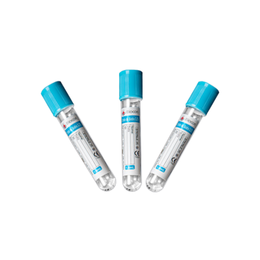 O citrato de sódio atua como anticoagulante ao quelar o cálcio do sangue, preservando os fatores de coagulação até o momento da análise. O tubo possui volume calibrado e sistema a vácuo, assegurando a correta relação 9:1 (sangue x anticoagulante).